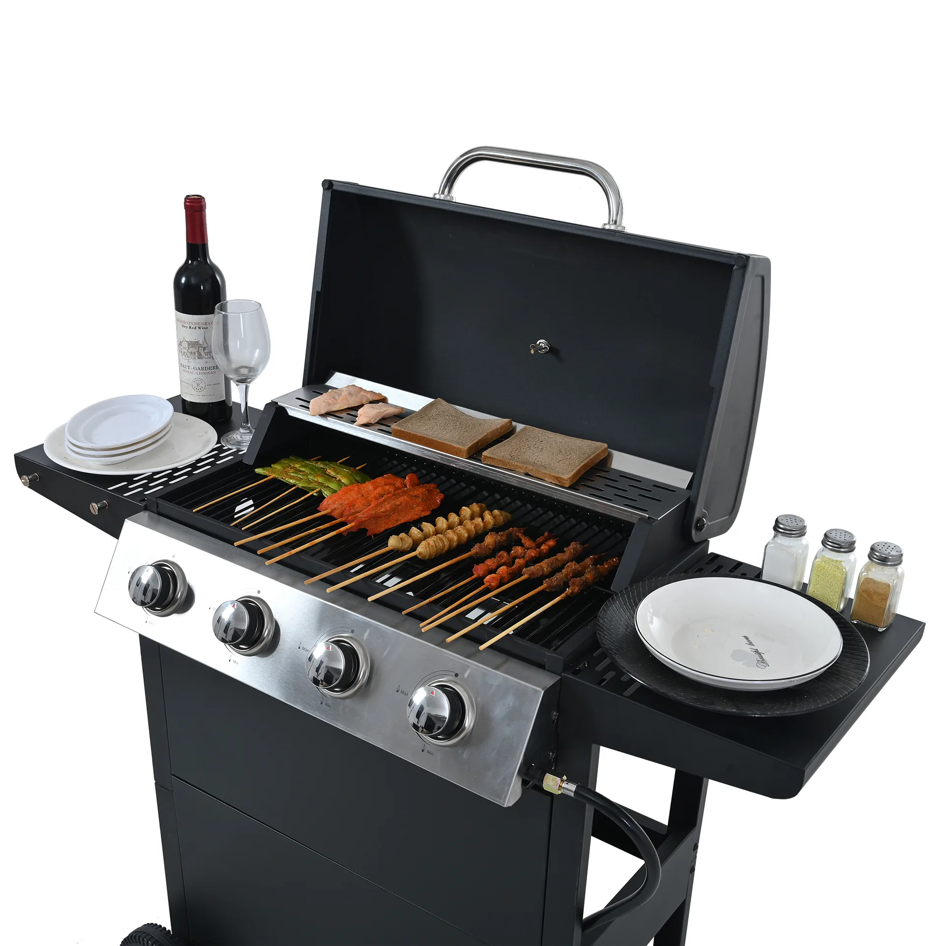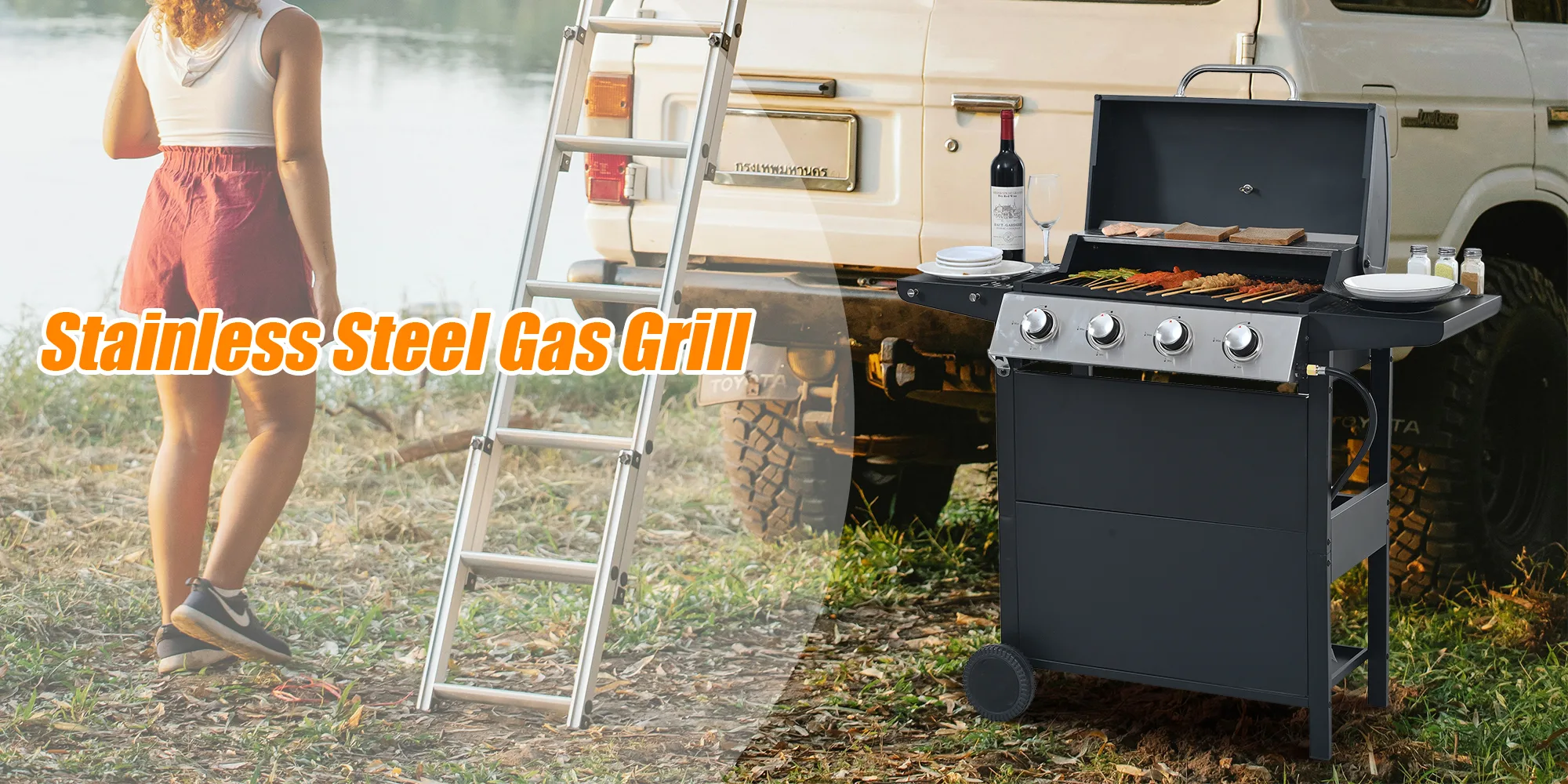 Elevate your outdoor cooking experience with our 4 Burner Propane Gas Grill. Crafted with durable stainless steel, this BBQ grill delivers a powerful 34,000 BTUs of heat for perfect grilling results every time. Ideal for outdoor spaces like patios and gardens, this grill features two shelves for added convenience. Whether you’re camping, tailgating, or simply enjoying a backyard BBQ, this portable grill is a must-have for any grilling enthusiast. Upgrade to our high-quality propane gas grill for a superior cooking experience.