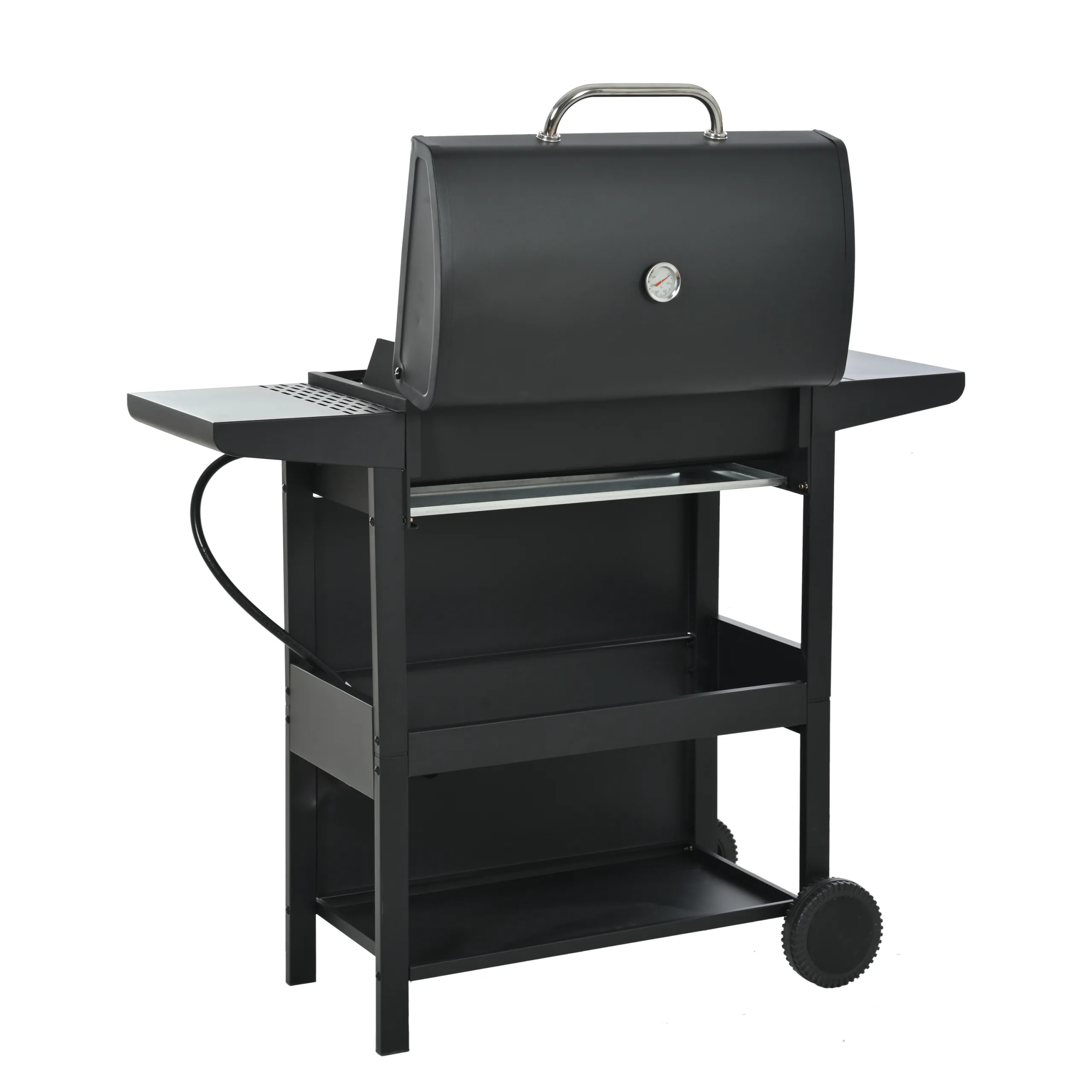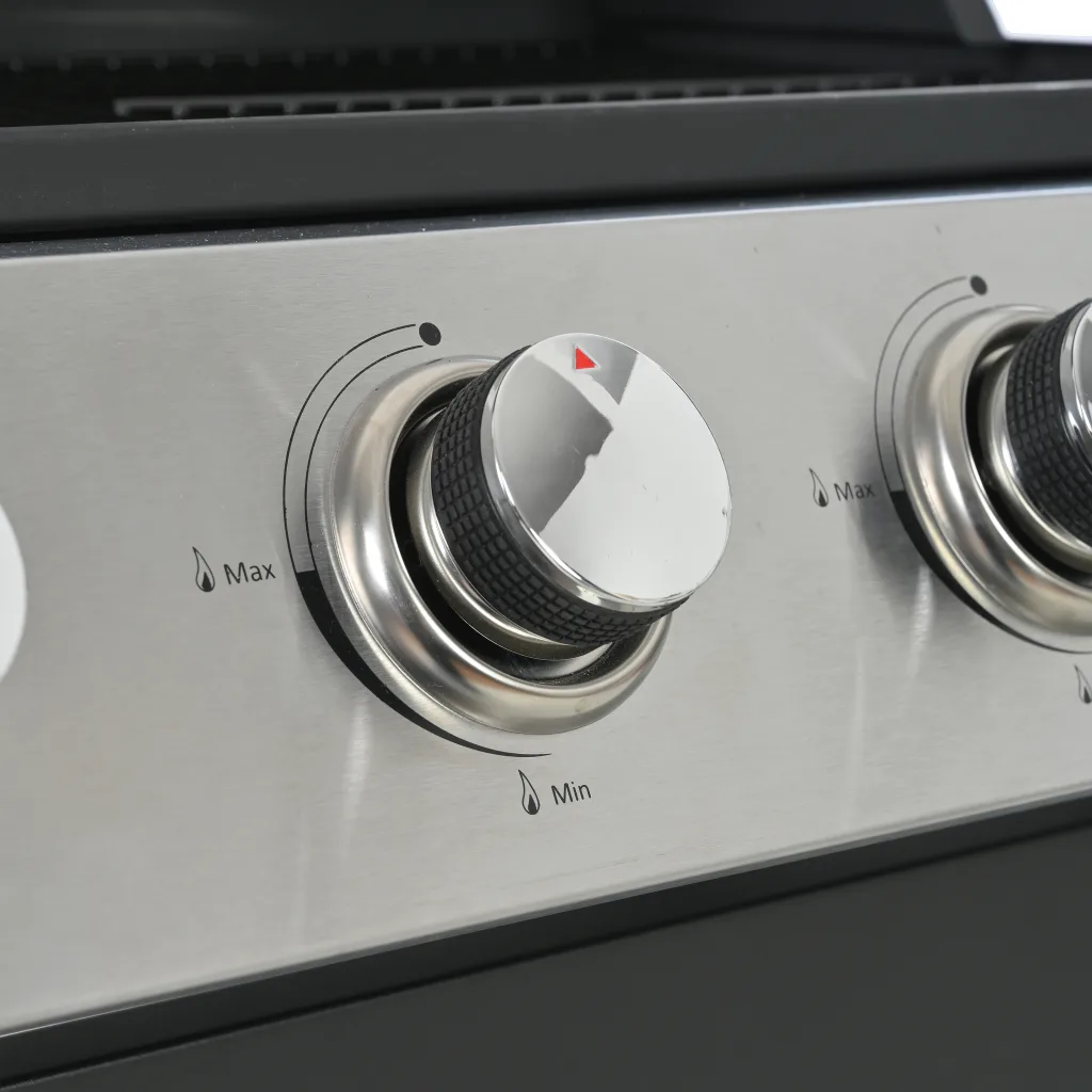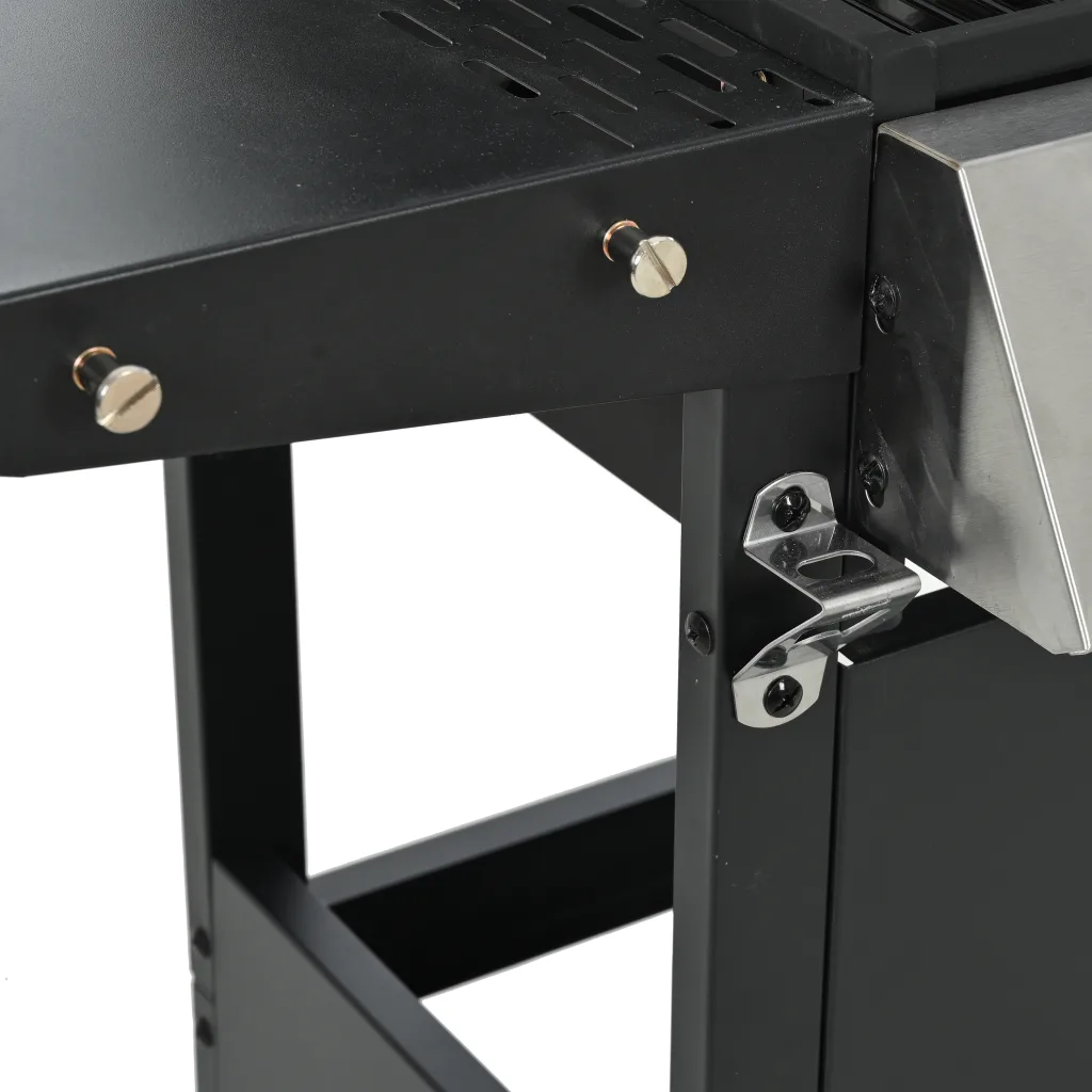 - Durable Design: Stainless steel control panel with chrome knobs, stainless steel handle, built-in thermometer, and two side tables with wheel casters for easy storage and mobility.